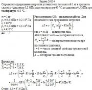 Определить приращение энтропии углекислого газа массой 1 кг в процессе сжатия от давления 0,2 МПа при температуре 40 °C до давления 4,5 МПа при температуре 453 °C.