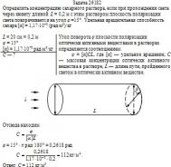 Определить концентрацию сахарного раствора, если при прохождении света через кювету длиной L = 0,2 м с этим раствором плоскость поляризации света поворачивается на угол φ =15°. Удельная вращательная способность сахара [α] = 1,17·10