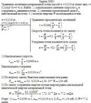 Уравнение колебания материальной точки массой m = 0,016 кг имеет вид х = 0,1sin(π/8·t+π/4) м. Найти: 1.) максимальное значение скорости v