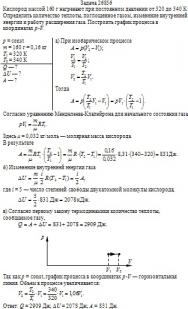 Кислород массой 160 г нагревают при постоянном давлении от 320 до 340 К. Определить количество теплоты, поглощенное газом, изменение внутренней энергии и работу расширения газа. Построить график процесса в координатах p-V.