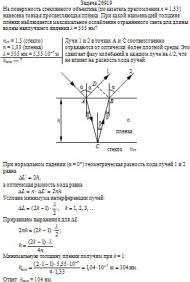 На поверхность стеклянного объектива (показатель преломления n = 1,33) нанесена тонкая просветляющая плёнка. При какой наименьшей толщине плёнки наблюдается максимальное ослабление отражённого света для длины волны наилучшего видения λ = 555 нм?