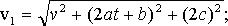 , где a, b, c, v — постоянные. Определить скорость частицы v
