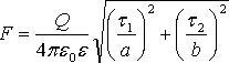 Два длинных, тонких, равномерно заряженных стержня расположены перпендикулярно друг другу так, что точка пересечения их осей находится на расстоянии а = 8 см и b = 5 см от ближайших концов стержней. Найти силу, действующую на заряд Q = 10 нКл. помещенный в точку пересечения осей стержней.