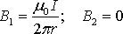 Постоянный ток I течет по длинному прямому проводу. Из точки О (см. рис.) он растекается радиально-симметрично по безграничной проводящей плоскости, перпендикулярной к проводу. Найти индукцию магнитного поля во всех точках пространства.