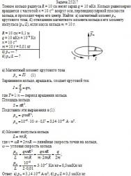 вокруг оси, перпендикулярной плоскости кольца, и проходит через его центр. Найти: а) магнитный момент p