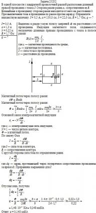 В одной плоскости с квадратной проволочной рамкой расположен длинный прямой проводник с током I. Сторона рамки равна а, сопротивление ее R. Ближайшая к проводнику сторона рамки находится от него на расстоянии b. При выключении тока в проводнике по рамке протек заряд q. Определите неизвестную величину. I = 0,5 A; a = 130,0 см; b = 22,0 см; R = 1,7 Ом; q — ?