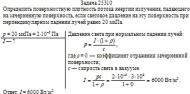 Определить поверхностную плотность потока энергии излучения, падающего на зачерненную поверхность, если световое давление на эту поверхность при перпендикулярном падении лучей равно 20 мкПа.