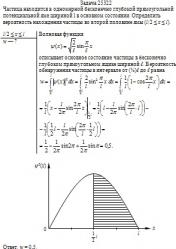 Частица находится в одномерной бесконечно глубокой прямоугольной потенциальной яме шириной l в основном состоянии. Определить вероятность нахождения частицы во второй половине ямы (
