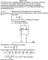 В одной плоскости с длинным прямым проводником, по которому проходит ток силой 40 А, размещена квадратная рамка так, что две ее стороны параллельны к проводнику, расстояние от проводника до ближайшей стороны рамки равна стороне квадрата (а = 70 см). Найти магнитный поток пронизывающий рамку.