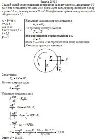 С какой силой следует прижать тормозную колодку к колесу, делающему 30 об/с, для остановки в течении 20 с, если масса колеса распределена по ободу и равна 10 кг, диаметр колеса 20 см? Коэффициент трения между колодкой и ободом колеса 0,5.