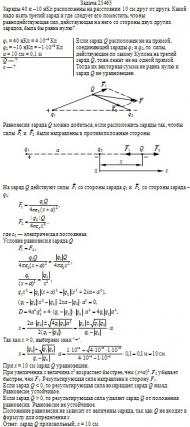 Заряды 40 и –10 нКл расположены на расстоянии 10 см друг от друга. Какой надо взять третий заряд и где следует его поместить, чтобы равнодействующая сил, действующая на него со стороны двух других зарядов, была бы равна нулю?