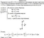 Парашютист массой m = 80 кг отделился от неподвижно висящего вертолета и, пролетев до раскрытия парашюта расстояние l = 200 м, приобрел скорость v = 50 м/с. Найдите работу А силы сопротивления воздуха на этом пути.