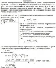 = 1 мА/м. Определить энергию, перенесенную волной за время t = 10 мин через площадку, расположенную перпендикулярно оси x, площадью поверхности S = 15 cм