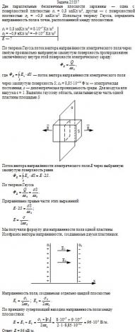. Используя теорему Гаусса, определить напряженность поля в точке, расположенной между плоскостями.