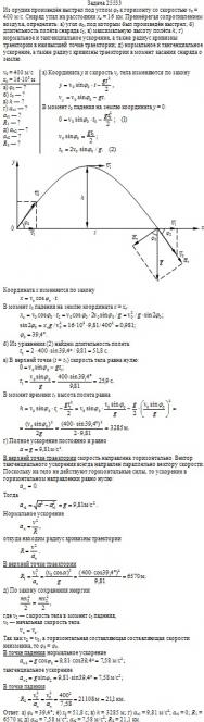 ; в) максимальную высоту полёта h; г) нормальное и тангенциальное ускорение, а также радиус кривизны траектории в наивысшей точке траектории; д) нормальное и тангенциальное ускорение, а также радиус кривизны траектории в момент касания снаряда о землю.