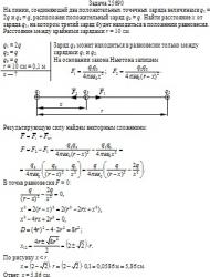 , на котором третий заряд будет находиться в положении равновесия. Расстояние между крайними зарядами r = 10 см.
