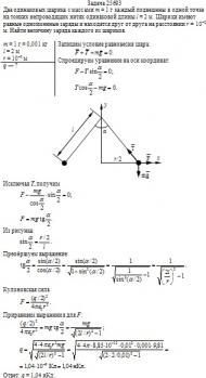 Два одинаковых шарика с массами m = 1 г каждый подвешены в одной точке на тонких непроводящих нитях одинаковой длины