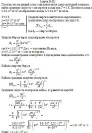 Полагая, что на каждый атом меди приходится один свободный электрон, найти среднюю скорость v электронов в меди при Т = 0 К. Плотность меди ρ = 8,9·10